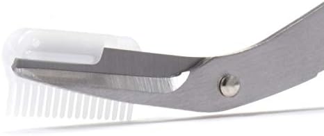 These 2-way eyebrow scissors can be used with a comb to trim the length of the eyebrows, and with the comb removed to cut one eyebrow at a time. Use when skin is clean, e.g. after washing face or bathing. Be aware of your surroundings, make sure no one is around and always use while looking in a mirror. To trim eyebrows : Hold the scissors in your right hand, open the scissors and gently insert the comb under the eyebrow and cut any uneven eyebrow hairs that stick out from the comb. *Cut the hairs little by little so as not to cut too much. Hold the scissors so that the comb is facing you. Cut at a slightly different angle to suit your eyebrows for easier cutting. Shaping the eyebrows: Remove the comb and use the scissors. With the scissors closed, firmly hold the rounded convex end of the comb with your left hand. Remove the comb from the other side of the comb while pressing slowly with your right thumb. Attaching and detaching the comb may be difficult, so do so on a stable surface. When inserting the comb, align it with the groove on the body of the scissors and insert it gently. *Check that the comb is set correctly before use. *Inserting the comb forcibly in the wrong position may break the comb section. The comb is not sold separately. 【Care instructions】After use, wipe off moisture and dirt with a soft cloth or tissue and store in a clean, well-ventilated place. Do not wash in water as it may cause rust.