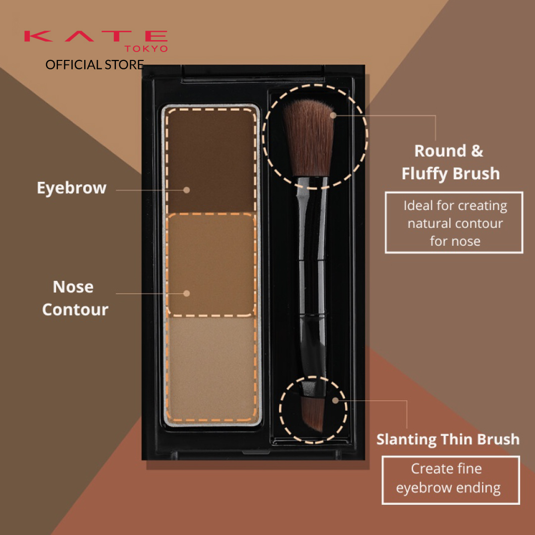 Dual brush ends that shapes eyebrows & contours nose with a natural 3-shade gradient palette to add 3D definition to face