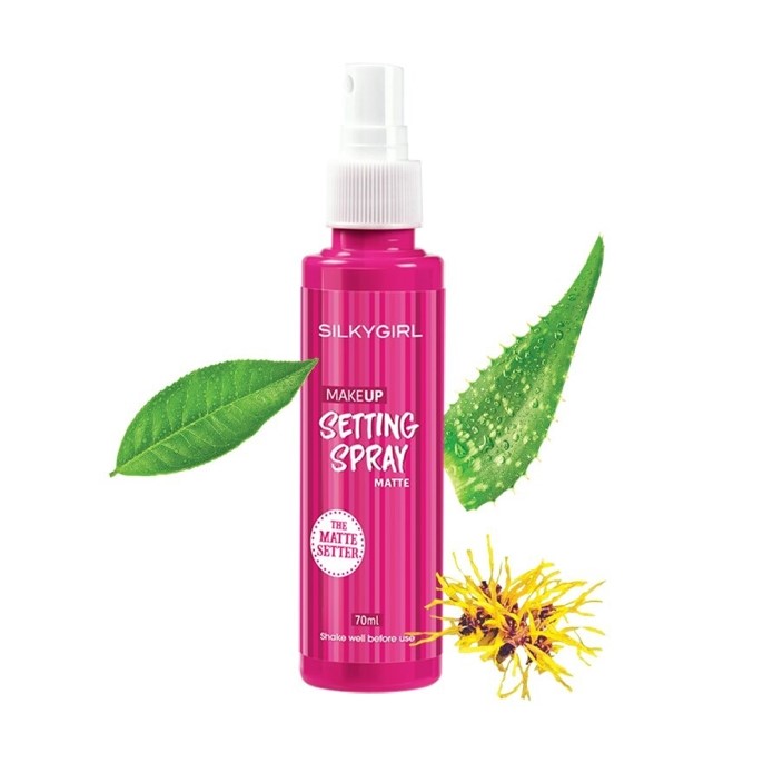 Spray on to slay all day (no more touch-ups required). Keeps makeup long-lasting. Skin stays matte and shine-free. Lightweight and refreshing. Enriched with natural extracts of Chamomile (soothes skin), Witch Hazel (tightens pores), Green Tea (acts as an antioxidant), and Aloe Vera (nourishes and maintains skin's moisture balance).