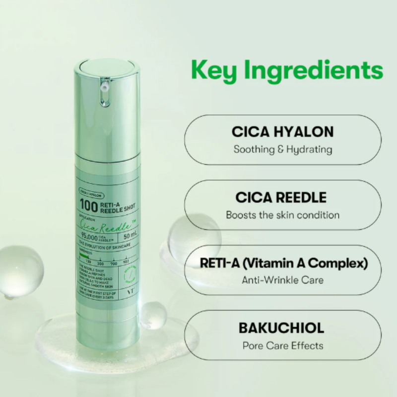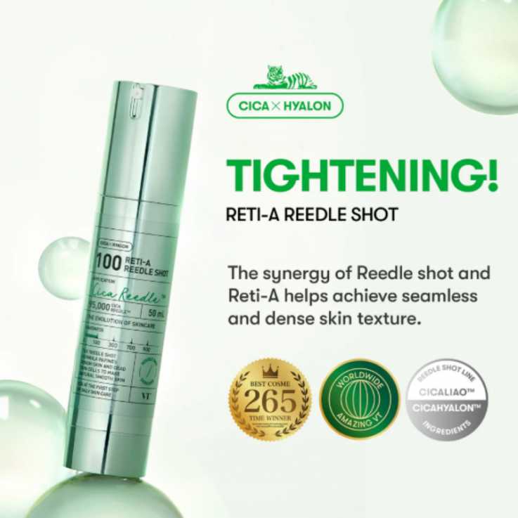Reti-A Reedle Shot 100 which is the main product of Reti-A line, this serum is infused with Cicahyalon™ provides synergistic pore care effetcs.
