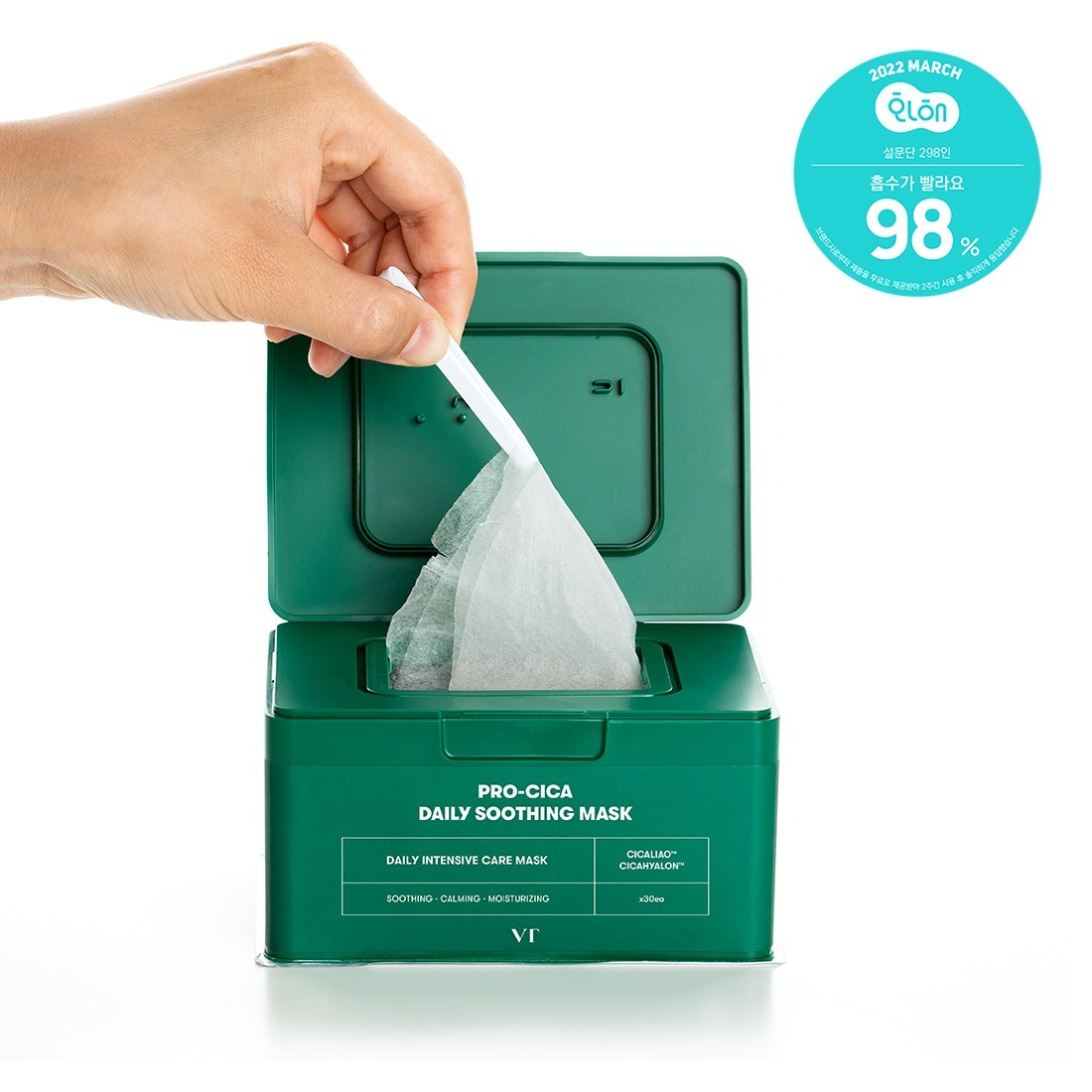 2. Open the lid, take a single mask sheet and align the mask sheet to your face.