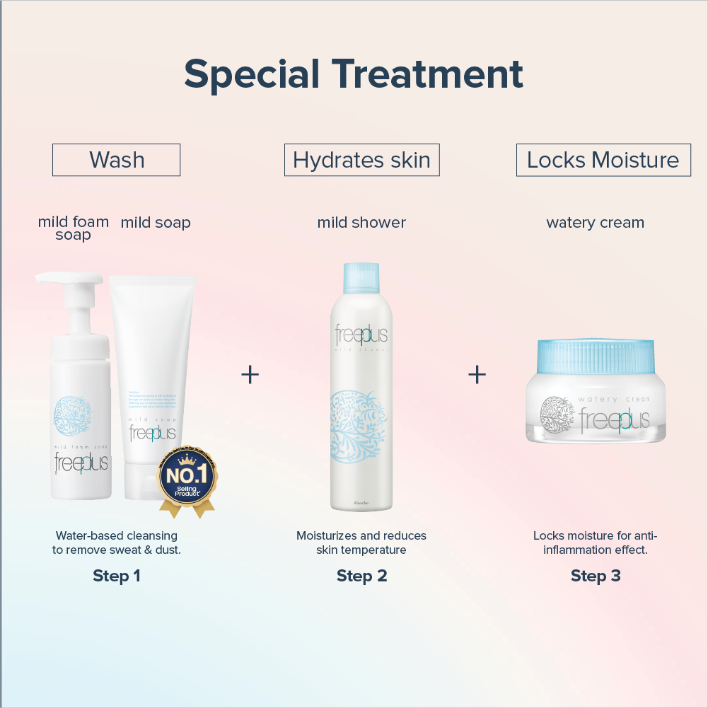 A mild moisture-infusing mist lotion to shower your skin with cools down skin and quickly delivers moisture