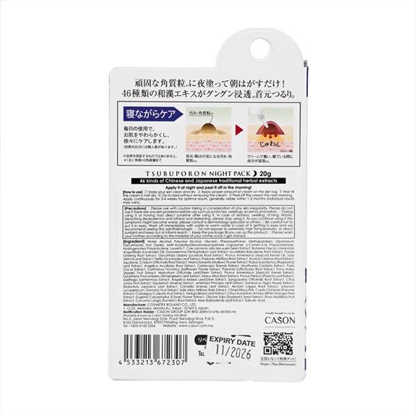 Remove unwanted milia (cysts) on neck. For night use only. Apply to stubborn areas of skin at night and peel off easily the next morning! 46 kinds of Japanese & Chinese plant extract penetrates deep into skin—resulting in clear smooth skin. For stubborn dirt and skin around neck and bust areas. Cover your skin with cream and its ingredients will penetrate while you sleep. Simply peel off when you wake up! Use every day for gradual care. (Effects will vary from person to person.)