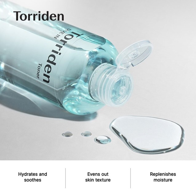 The 3 times WINNER of Hwahae Beauty Awards from 2020-2022! Discover the ultimate solution for a smooth, soft, and refreshing skin with TORRIDEN DIVE-IN Low Molecular Hyaluronic Acid Toner. This clear and invigorating liquid effortlessly reduces friction between the cotton pad and your skin, absorbing quickly and leaving no sticky residue.With each wipe, the toner enhances your skin's comfort and softness, leaving you feeling refreshed and rejuvenated. Its low pH level and the addition of panthenol and allantoin provide soothing effects, revitalizing tired skin and alleviating sensitivity caused by washing.Gentle and effective, this toner cleanses your skin while balancing its texture, leaving it feeling fresh and hydrated. Experience the transformative effects of TORRIDEN DIVE-IN Low Molecular Hyaluronic Acid Toner and revel in the renewed vitality of your skin.Ingredients We Love: 5D-Multi-Hyaluronic Acid, Malachite Extract, Panthenol, AllantoinSkin TypeMade for all skin types, especially sensitive, oily and dehydrated skin.