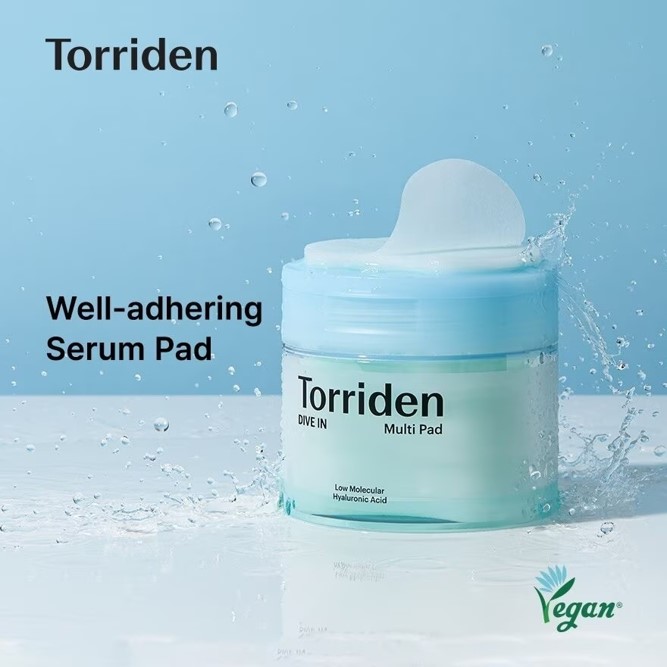 TORRIDEN DIVE-IN Low Molecular Hyaluronic Acid Multi Pad, the multi-purpose serum pads are a convenient and easy way to provide filling moisture and smoothness to the skin. A daily moisture multi pad provides cooling relief to soothe skin with 5D multi low-molecular Hyaluronic Acid.The pads are hypoallergenic and super-adhering, adhering well to the skin with a soft, low-irritant material. They contain Torriden's moisturizing remedy DIVE-IN Serum, which is known for its ability to provide long-lasting moisture and hydration to the skin. The pads have a 1/10 density of paper, allowing them to adhere to the skin without slipping off. They are also soft and gentle on the skin, providing a delightful feeling of moisture and hydration that lasts.Ingredients We Love: 5D-Multi-Hyaluronic Acid, Panthenol, AllantoinSkin TypeMade for all skin types, especially sensitive, oily and dehydrated skin.
