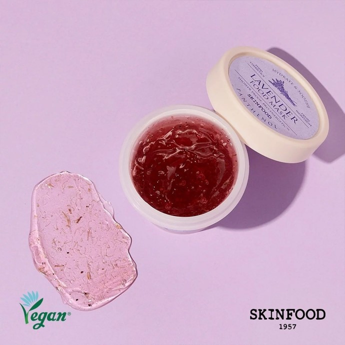 Hydrate and Soothe with SKINFOOD Lavender Food Mask! This jelly-type mask hugs the skin with 10% Lavender Flower Water (anti-inflammatory) and Panthenol (humectant) to moisturize and protect the skin barrier leaving it soft and bouncy. TIP: Store in the fridge for an extra cooling effect.Ingredients We Love: Portulaca Oleracea Extract, Glycerin, PanthenolSkin TypeMade for all skin types, especially sensitive, oily and dehydrated skin.